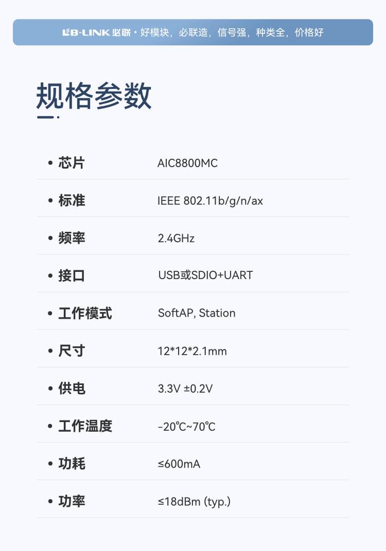 AIC8800MC 芯片 WiFi6+B5.2 模组